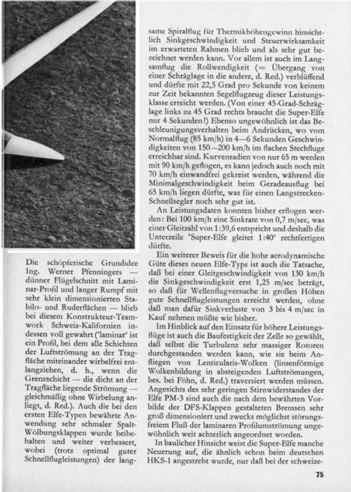 wickelten Laminarprofil von 13,3 % Dicke war die Elfe PM 1 ihrer Zeit zwanzig Jahre voraus. Die errechnete