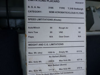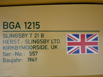 Details der Slingsby T 21, BGA 3292, Serien-Nummer 586