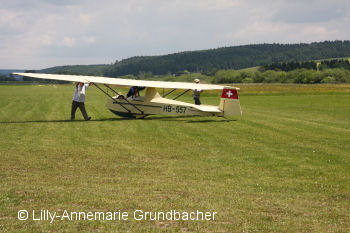 Eigentümer der HB-748, Serien-Nr. 1371, ist Hans Michel.
