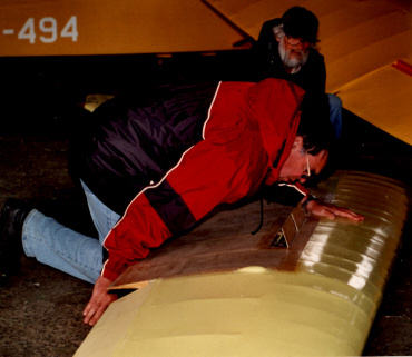 Auf dem Bild rechts: Lilly-Annemarie Grundbacher, die Eigentümerin des Flugzeugs, und Ruedi Sägesser.