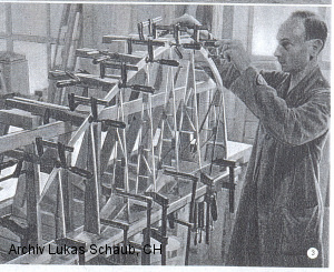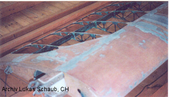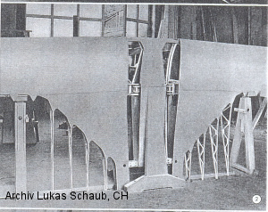 Einbau der Sturz- flugbremsen. Links die schwenkbare Flügelhelling. |