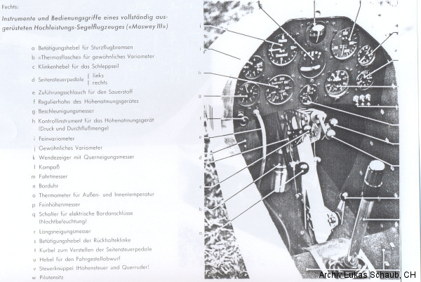 Cockpit-Gestaltung der Moswey III, HB-485.
