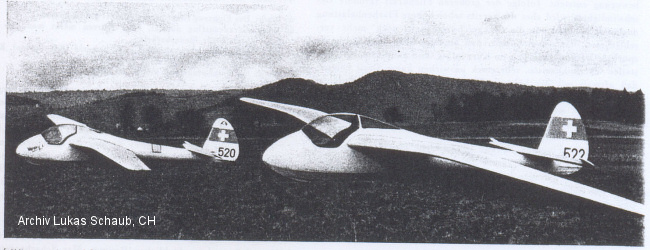 Moswey 4, HB-520, von H. R. Comte, und Moswey 4a, HB-522, von M. Schachenmann, vor dem Start