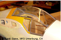 Die Spanten wurden aus 4 mm Pappelsperrholz, Die Holmbrücke ist aus Aluminium gefräst.