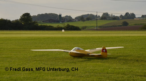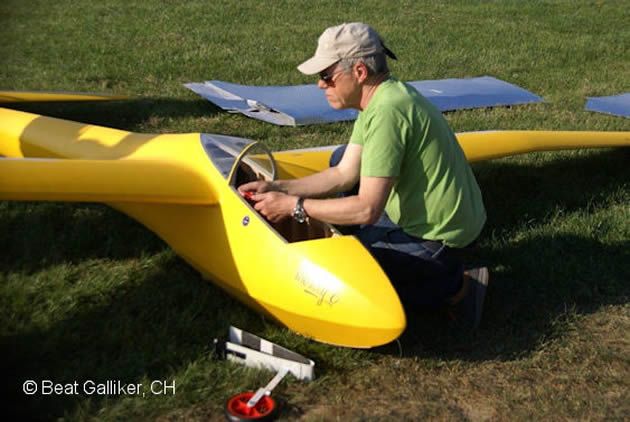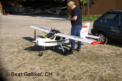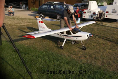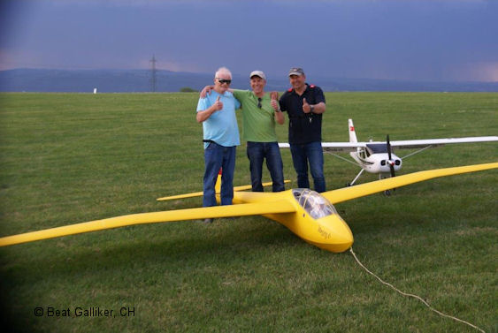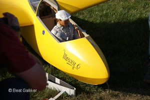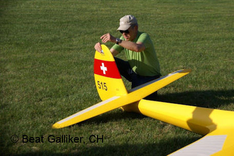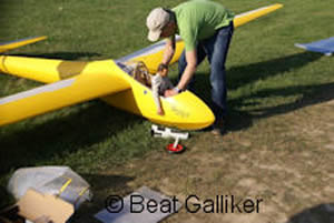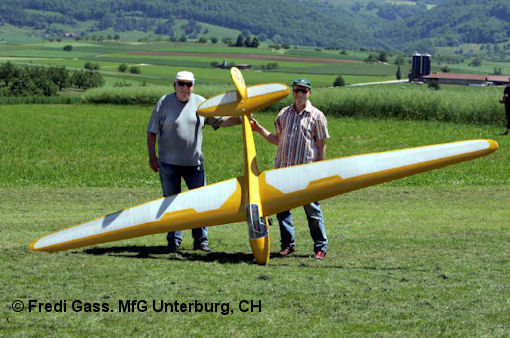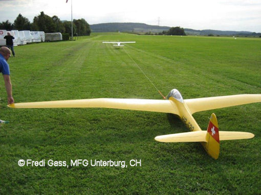 Fredi Gass (www.schleppseilwinde.ch) und ein entsprechendes Schleppmodell, Glasstar von Fliegerlandshop mit einem 140 ccm