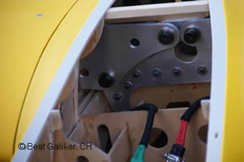 teilweise aus 5 mm Flugzeugsperrholz gefräst. 2 Stahlbolzen pro Flügel.