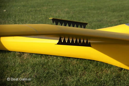 Die Querruder haben eine sogenannte "Friesennase". Um einen entgegen der