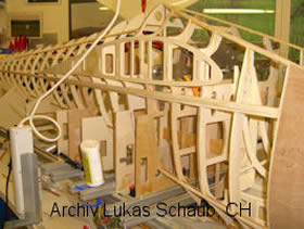 Die Beplankung erfolgte mit 0,6 mm Sperrholz.