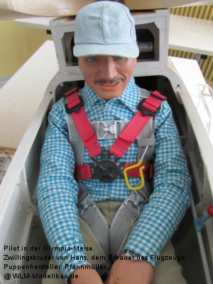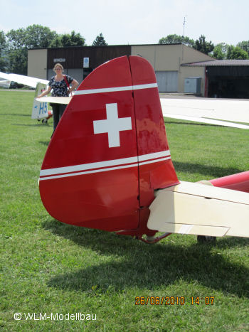 Hans Graf, CH, baute das Flugzeug im Maßstab 1:3, Spannweite 5,00 m, nach. Das Gewicht