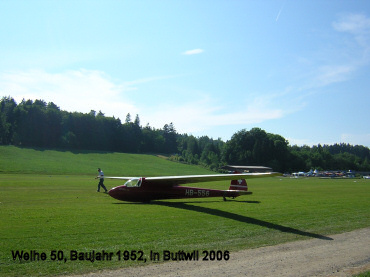 Weihe 50 im Schlepp auf dem Flugplatz Hornberg anlässlich des 22. OSV-Treffens 2010.