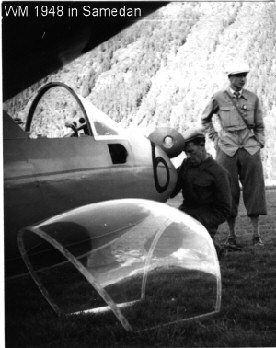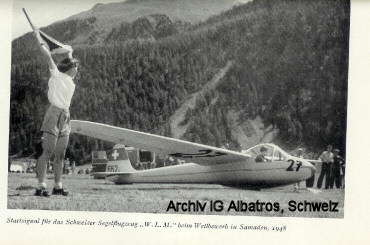 Konstrukteuren beglückwünscht. Sie schreiben: Sägi im selbsterbauten Kunstflugzeug. Kein Männchen