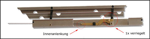 Die 740 mm-Landeklappe besteht quasi aus 2 gekoppelten 370 mm-Landeklappen. Sie ist somit innen angelenkt und 2 x verriegelt.